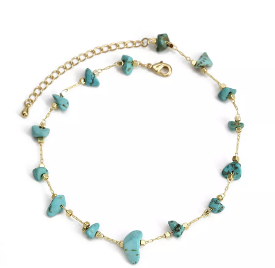De enkelband turkoois goudkleurig is verstelbaar en ontworpen om comfortabel om de enkel te dragen. Ideaal voor wie op zoek is naar een accessoire dat zowel stijlvol als betekenisvol is. Of je nu kiest voor de kleur of de symboliek van turkoois, deze enkelband brengt gegarandeerd een vleugje verfijnde eenvoud aan jouw dagelijkse look.