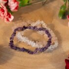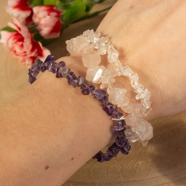 De Rozenkwarts armband staat voor liefde en compassie, en helpt je om liefdevolle energie aan te trekken, zowel voor jezelf als voor anderen. Amethist bevordert innerlijke rust, helpt bij het loslaten van negatieve gedachten en bevordert spirituele groei. Bergkristal staat bekend om zijn zuiverende eigenschappen, het versterken van energie en het bevorderen van helderheid in je geest. Samen bieden deze stenen een krachtige combinatie die zowel fysiek als energetisch je welzijn ondersteunt.