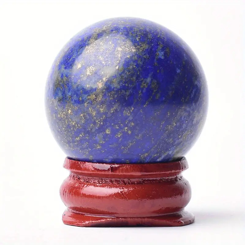 Ontdek de diepe, mystieke aantrekkingskracht van onze lapis lazuli bol op een houten standaard. Met zijn rijke, koningsblauwe tinten en gouden spikkels van pyriet, biedt deze lapis lazuli bol van 30 mm een venster naar de hemel en een aardse basis, allemaal in één prachtig stuk.