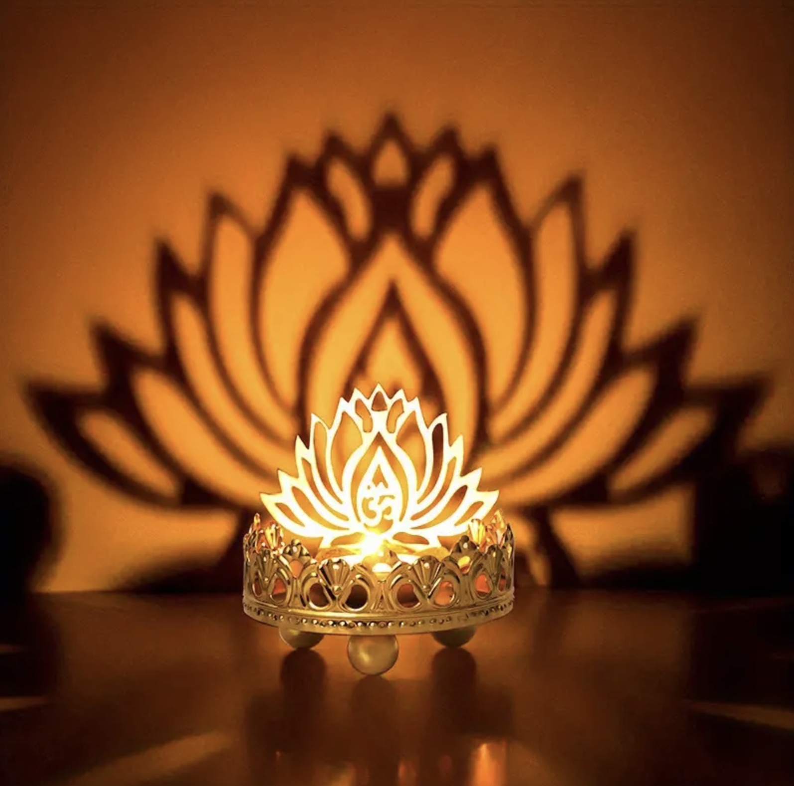 Breng de symboliek van de lotus – een teken van zuiverheid, groei en verlichting – tot leven met deze prachtige gouden lotus kaarshouder. Wanneer je een kaars in deze houder plaatst, werpt hij een betoverende lotusschaduw op de muur, die je ruimte direct vult met warmte en diepte. De lotus, bekend als een bloem die vanuit de modder oprijst naar het licht, herinnert ons aan innerlijke kracht en de schoonheid van transformatie.