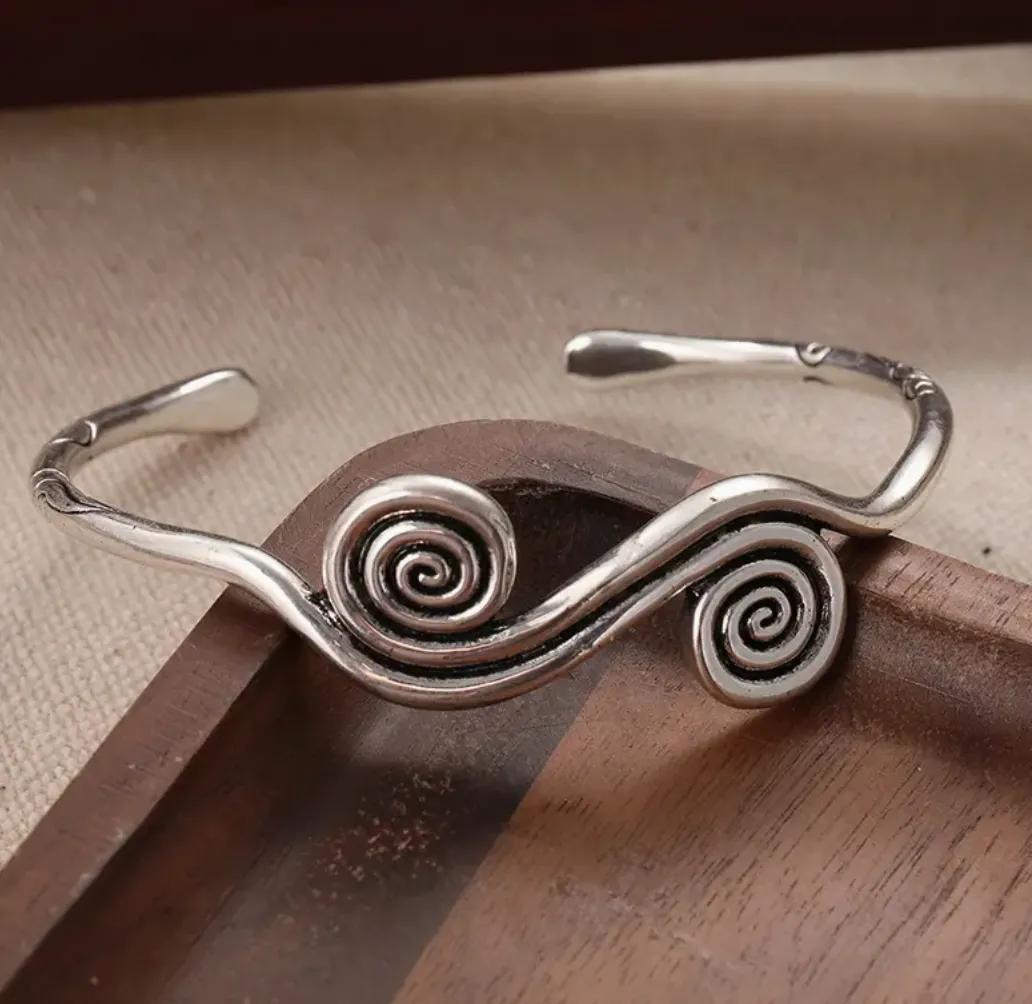 De spiraal is een krachtig symbool dat staat voor groei, levensenergie en oneindigheid. Met deze dubbele spiraal draag je niet alleen een stijlvol accessoire, maar ook een diepere betekenis die uitnodigt tot balans en persoonlijke ontwikkeling. Het koele zilverkleurige metaal geeft de armband een moderne uitstraling, die goed combineert met andere sieraden of solo gedragen kan worden voor een minimalistische look.
